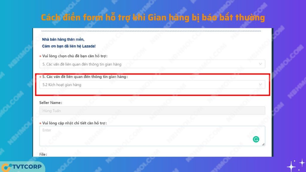 + Phần chi tiết hỗ trợ: điền “Gian hàng bị chặn đăng tải sản phẩm”