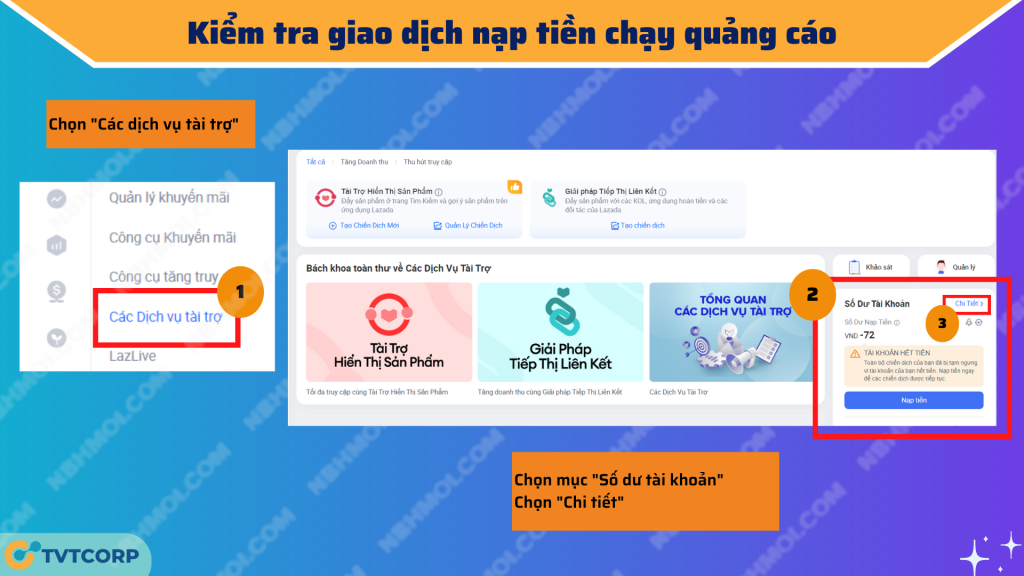 Nếu NBH không nạp tiền để chạy quảng cáo nhưng vẫn bị tính phí này, có thể là do NBH đã chọn vào mục chạy tài trợ hiển thị sản phẩm từ doanh thu của gian hàng. Trong trường hợp này, khi có bất kì đơn hàng phát sinh và có doanh thu về tài khoản, hệ thống sẽ tự động trừ tiền từ doanh thu cho hoạt động chạy quảng cáo sản phẩm.